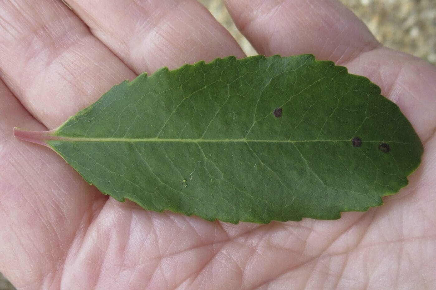 Tree ID by oval thin leaf – bay, olive, strawberry tree, star magnolia, blackthorn, spindle and grey willow. Click on any photo to enlarge it. To go back to the Broadleaf Leaf Key click HERE. To go back to the Tree Identification Keys click HERE. To learn more about a tree click on its name in BLUE.