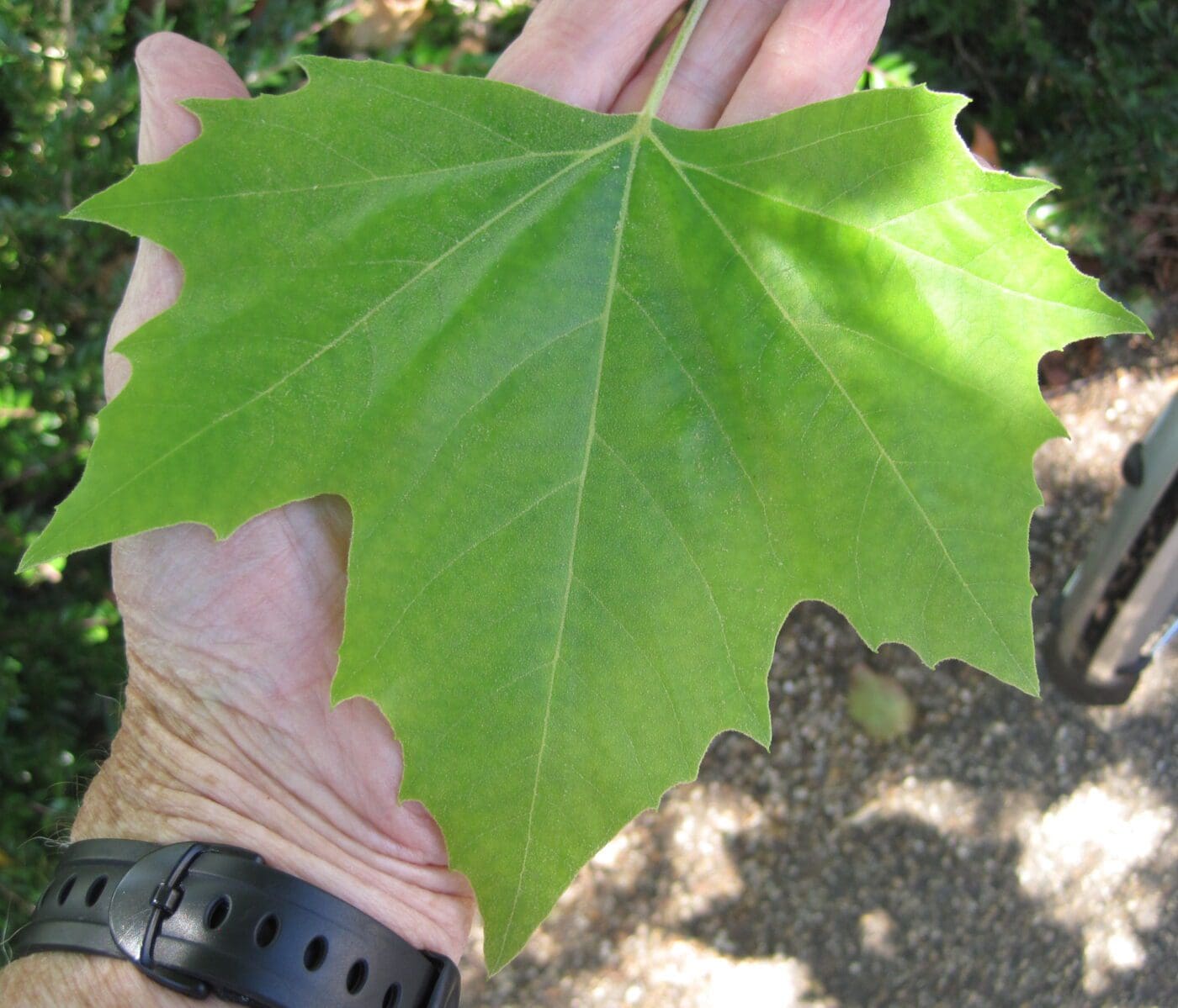ID by palmately-lobed non-maple leaf – 5 Non-Maples (Wild Service, London Plane, Oriental Plane, White Poplar and Sweet Gum). Click on any photo to enlarge it. To go back to the Broadleaf Leaf Key click HERE. To go back to the Tree Identification Keys click HERE. Click on the tree names in blue to get a full description of the tree.